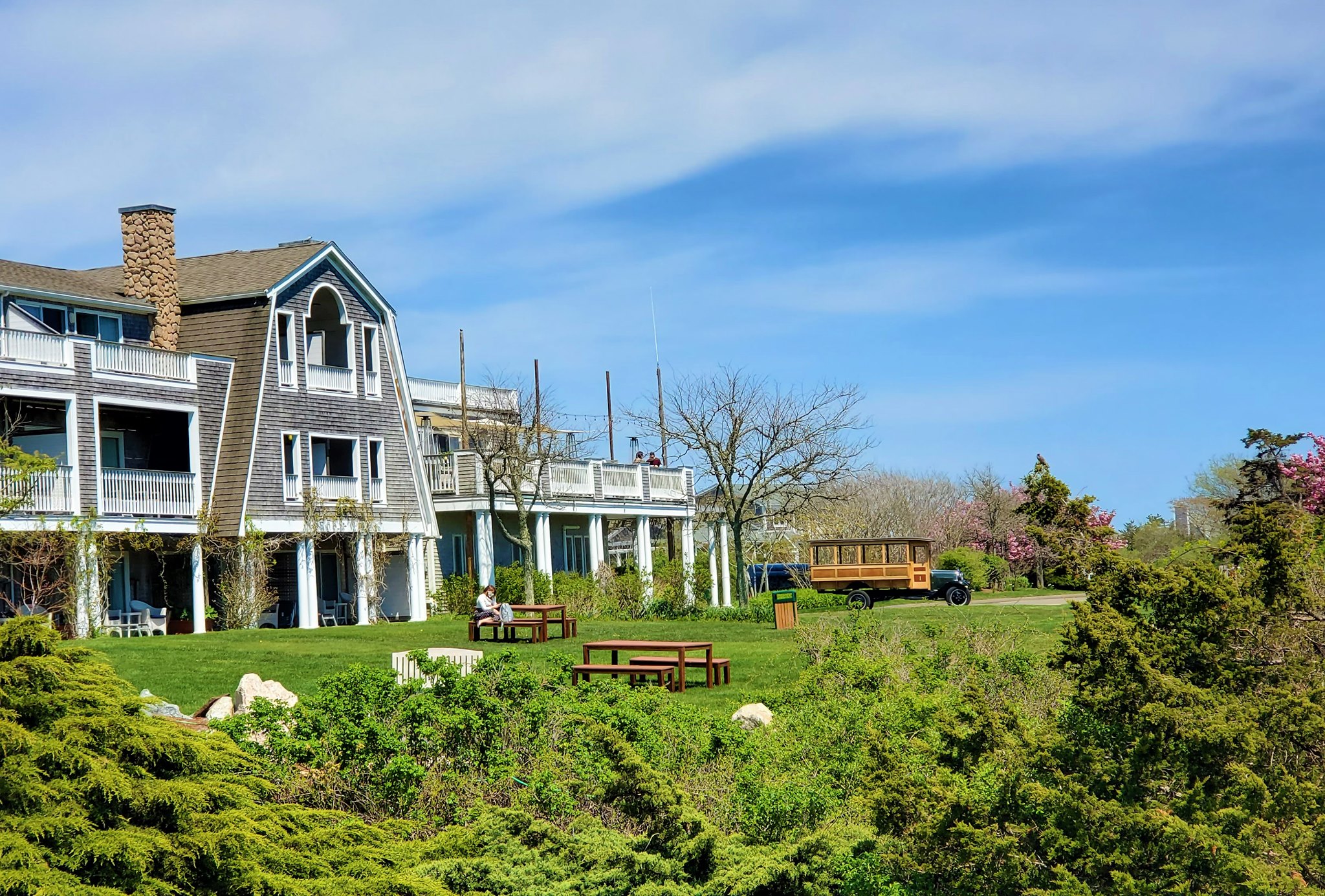 This Resort is ten minutes from Edgartown, walking distance to the beach, has beautiful Instagram worthy grounds and activities, and an excellent restaurant and bar that people make reservations at even if they are staying elsewhere.